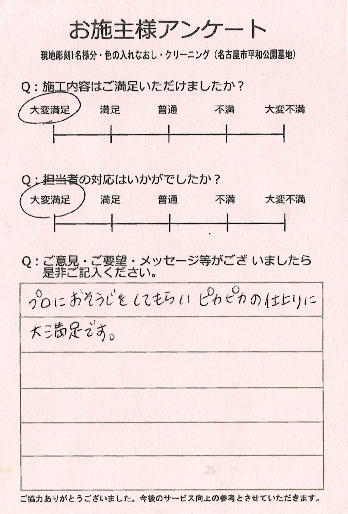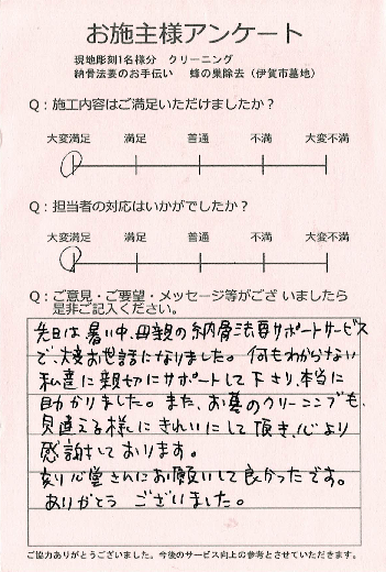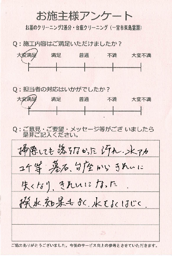 墓石のクリーニングの施工後のお客様からの評価は、ほぼ皆様「こんなに綺麗になるとは思ってなかった」と喜んでいただけます。百聞は一見にしかず。実際の施工事例やお客様からいただいた施工後のアンケートをご覧ください。